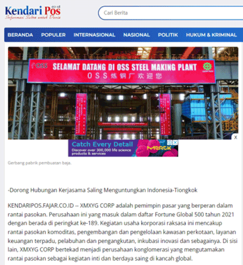 ▲象嶼集團創(chuàng)新推進混合所有制改革,在印尼建設(shè)250萬噸不銹鋼冶煉一體化項目,獲印尼媒體廣泛關(guān)注報道