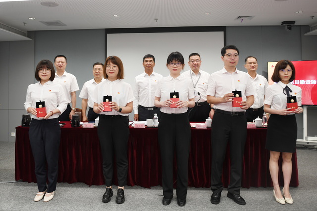 ▲集團領(lǐng)導為通訊員代表頒發(fā)通訊員徽章,象嶼集團通訊員隊伍正式組建成立。
