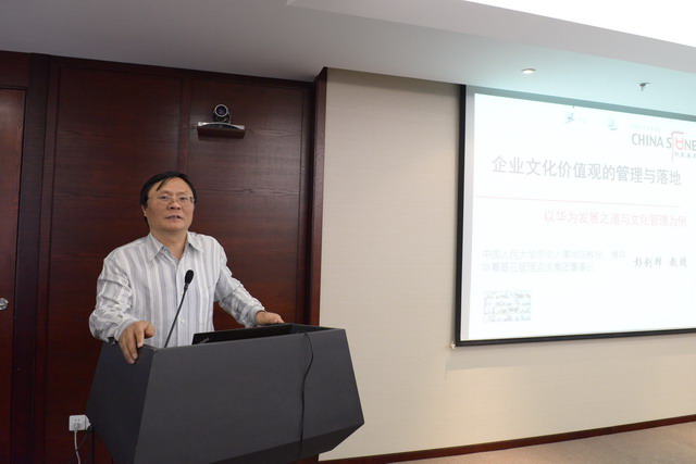 彭劍鋒教授觀點(diǎn)鮮明地提出,創(chuàng)新驅(qū)動(dòng)已成為中國(guó)產(chǎn)業(yè)轉(zhuǎn)型升級(jí)的內(nèi)在驅(qū)動(dòng)力,而企業(yè)文化建設(shè)對(duì)激活人的價(jià)值創(chuàng)造活力,提升人的價(jià)值創(chuàng)造能力,完成企業(yè)的轉(zhuǎn)型具有特殊的意義。彭教授以華為公司發(fā)展之道與文化管理為例,分享了這家企業(yè)以“華為基本法”的起草形成、變革發(fā)展歷程為主線的企業(yè)文化建設(shè)之路,以及企業(yè)文化建設(shè)對(duì)華為公司從1992年銷售收入僅1個(gè)億到現(xiàn)在超過(guò)2000個(gè)億的高質(zhì)量發(fā)展的積極助益。彭教授指出,企業(yè)文化理念是自我批判、自我超越的結(jié)果,需要回答好三個(gè)問(wèn)題:過(guò)去為什么成功?過(guò)去成功的關(guān)鍵要素哪些能夠持續(xù)幫助企業(yè)成功?未來(lái)成功靠什么?在此基礎(chǔ)上形成的共識(shí)比什么都重要,將這樣的文化理念融入企業(yè)的機(jī)制建設(shè)與制度建設(shè),將對(duì)企業(yè)發(fā)展發(fā)揮巨大的作用。
