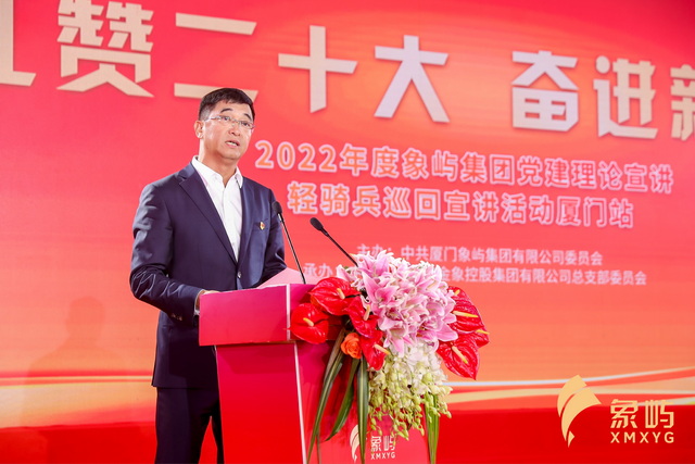 禮贊二十大,奮進(jìn)新征程。11月28日,2022年度象嶼集團(tuán)黨建理論宣講輕騎兵巡回宣講廈門站,在剛剛啟用的集團(tuán)新總部——象嶼集團(tuán)大廈舉行。象嶼人以這一獨(dú)具象嶼特色的黨建文化活動(dòng),學(xué)習(xí)宣傳貫徹黨的二十大精神,為新征程錨定紅色原點(diǎn)、鼓足文化風(fēng)帆,吹響繼往開來、接續(xù)奮斗的號(hào)角。廈門市國(guó)資委黨委副書記、二級(jí)巡視員陳華,集團(tuán)領(lǐng)導(dǎo)班子,老領(lǐng)導(dǎo)老同志,在廈公司員工代表等現(xiàn)場(chǎng)參加活動(dòng)。