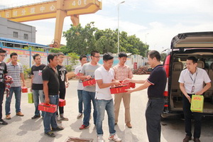 “感謝公司領(lǐng)導(dǎo)對我們的關(guān)懷,給我們送來了防暑降溫的慰問品。真是送到我們的心坎上了?!蔽繂柆F(xiàn)場,員工們接過消暑慰問品,說著感謝的話。