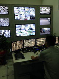 園區(qū)值班人員一邊早早通知經(jīng)營(yíng)商戶檢查防臺(tái)加固,一邊隨時(shí)監(jiān)控著園區(qū)的安全狀況。
