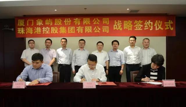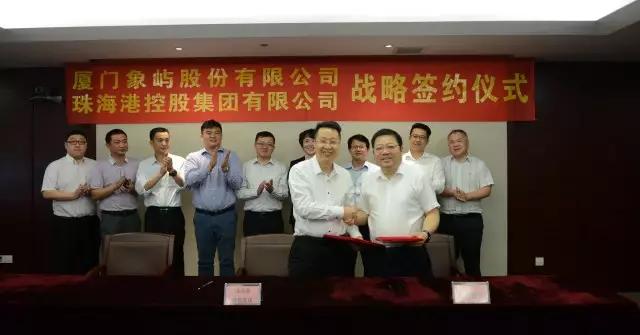 象嶼股份副總經(jīng)理程益亮、象嶼集團(tuán)投資發(fā)展總監(jiān)吳捷、象嶼股份物流管理中心總監(jiān)孫剛與珠海港控股集團(tuán)其他領(lǐng)導(dǎo)共同見證了簽約。