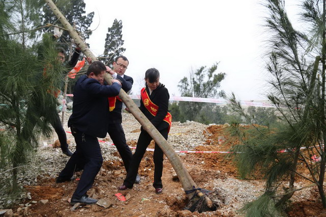 2016年3月,象嶼發(fā)展運(yùn)營(yíng)中心青年志愿者得知大嶝島陽塘村防風(fēng)林有處缺口,便立即購(gòu)入100多顆黃麻樹,協(xié)同陽塘社區(qū)共植防風(fēng)林。經(jīng)過一下午的努力,大嶝島的東面沿海風(fēng)口又筑起了一道“綠色屏障”。
