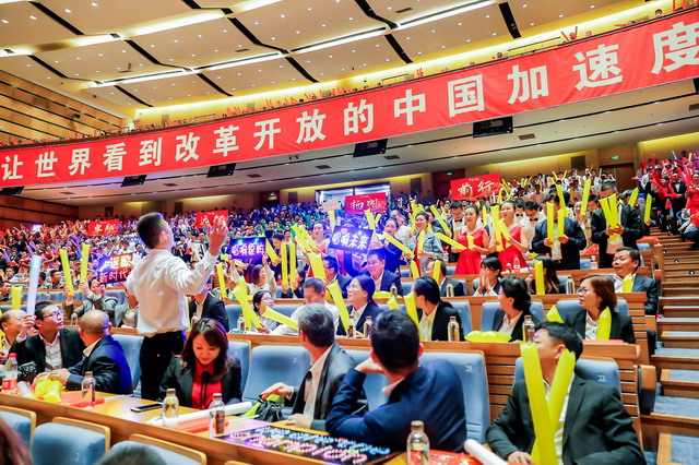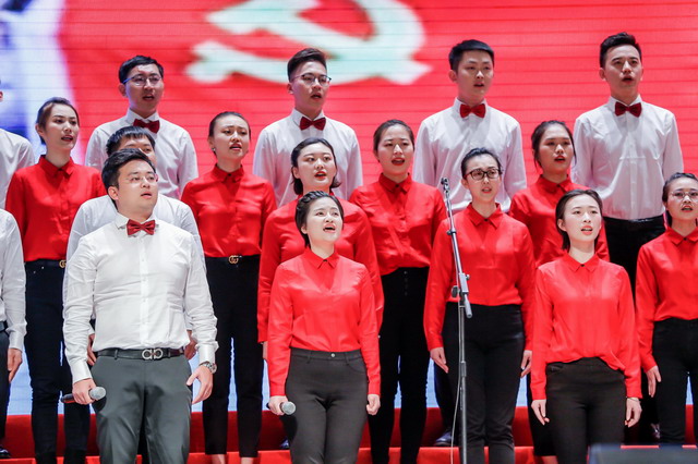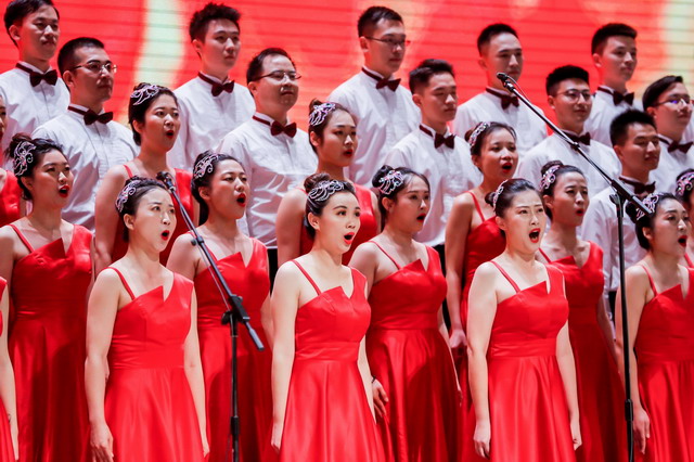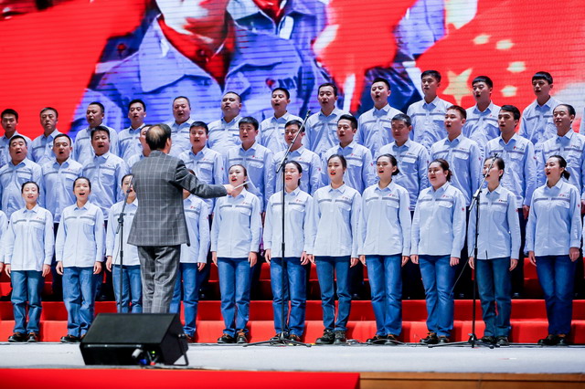 企業(yè)與國家命運(yùn)緊密相連,祖國的繁榮昌盛為每個人的夢想提供了廣闊的舞臺,祖國的和諧穩(wěn)定也為每個人的夢想提供了蓬勃生長的空間?!蹲鎳粫洝贰段业闹袊摹贰吨袊鴫?!飛起來》《今天是你的生日》《走向復(fù)興》……一首首澎湃的愛國主義旋律在紅色舞臺上飛揚(yáng),臺上臺下千名象嶼人和共建單位的黨員干部群眾手舞紅旗,共同輝映成一片紅色的海洋,展現(xiàn)出人民對黨、對祖國的深厚感情,呈現(xiàn)出一派積極向上、開拓進(jìn)取的精神風(fēng)貌。