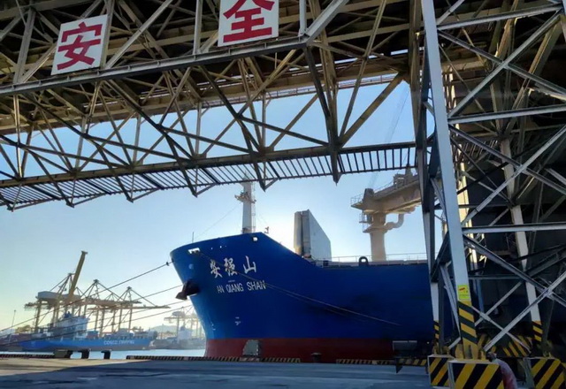 廣東省廣州市,象嶼股份與中遠(yuǎn)海散運(yùn)合作的班輪,滿載5萬噸玉米,??吭趶V州新港。這樣的班輪,每30天就有一班。這些糧食從富錦走鐵路到大連,從大連走海路到廣州,公路運(yùn)輸比重不到全程的1/10,運(yùn)輸成本大大降低。