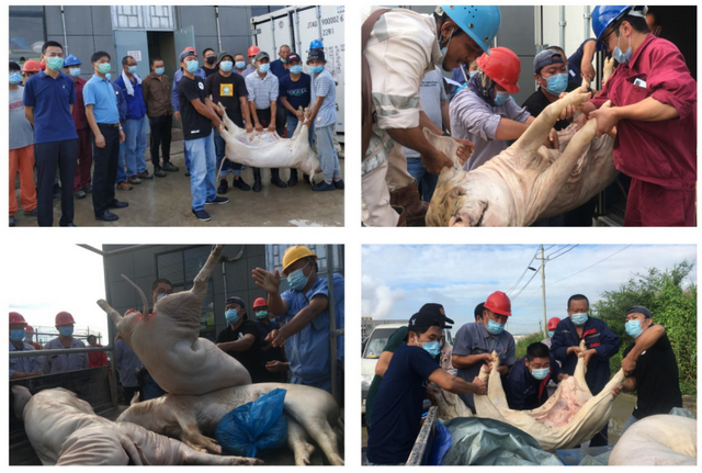 長時間停留海外、加班加點,思鄉(xiāng)、疲倦是人之常情。在象嶼集團(tuán)黨委的關(guān)心下,在黨委副書記、總裁陳方的具體指導(dǎo)下,象嶼管理團(tuán)隊積極行動起來,慰問外協(xié)單位一線員工??紤]到發(fā)放豬肉比較實在,又能滿足中國員工對家鄉(xiāng)味道的想念,“尋豬”一事就這樣提上日程。