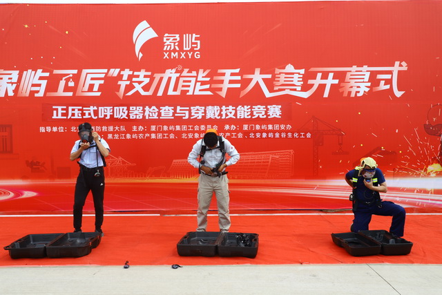 同日,正壓式呼吸器檢查與穿戴技能競賽在北安象嶼產(chǎn)業(yè)園舉行,來自南通、綏化、富錦、北安等地公司的17名選手依次登臺(tái)比拼技藝。