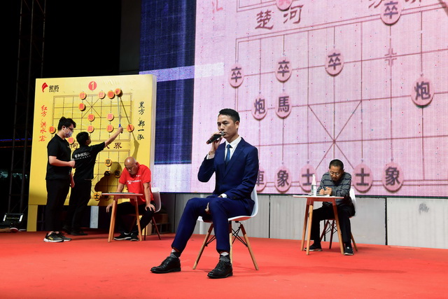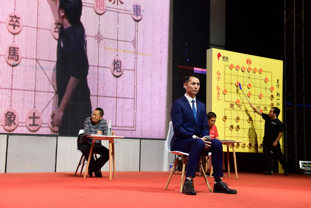 “第一臺,紅方馬二進三”, “卒1進9”, “第二臺,紅方兵三進一”……鄭一泓背對棋盤,與兩名活動金獎獲得者洪水沯、孫玉匯展開盲棋表演賽。盲棋是指眼睛不看棋盤、手不摸棋子,以唱棋的形式與人對弈,對棋手的記憶能力與抽象思維能力都有很高要求。只見唱棋聲中,兵來卒往、炮飛馬跳,最終,鄭一泓以1勝1平結束了這場智力對決。