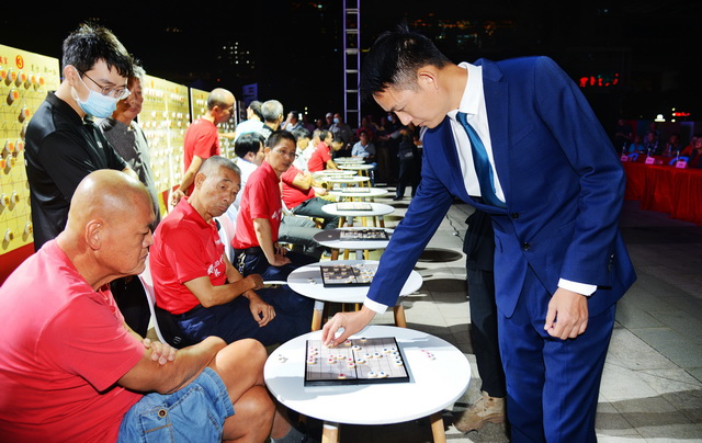 主辦方還邀請福建省唯一的中國象棋特級大師鄭一泓與獲獎選手進行一對二盲棋表演賽和一對十車輪表演賽,吸引大量象棋愛好者和市民駐足觀看。