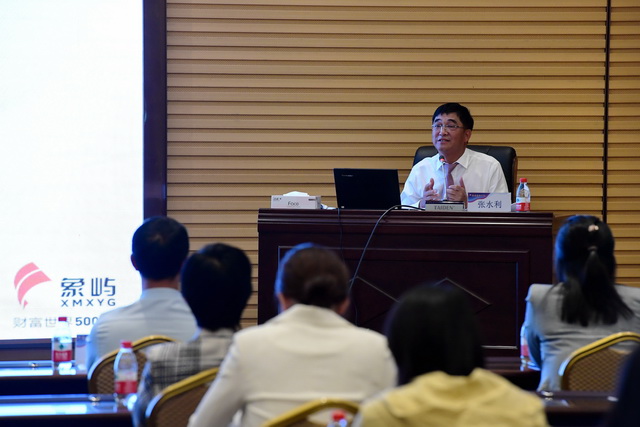 講座中,張水利董事長(zhǎng)首先回顧了象嶼集團(tuán)以市場(chǎng)化理念成就世界五百強(qiáng)的發(fā)展歷程,并簡(jiǎn)要介紹集團(tuán)旗下業(yè)務(wù)板塊。