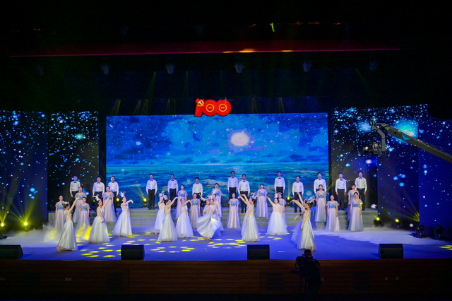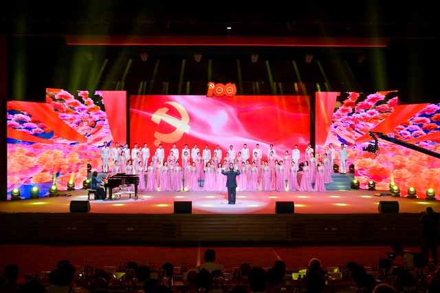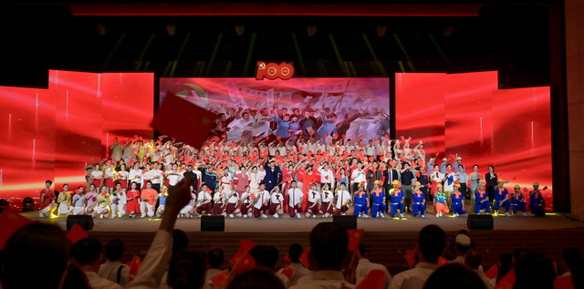 “迎風(fēng)飄揚的旗,我們舉著你,舉起你就是舉起我們自己。迎風(fēng)飄揚的旗,我們跟著你,跟著你就是跟著信仰堅定不移。”合唱《迎風(fēng)飄揚的旗》,拉開展演活動的序幕。這面鐮刀錘頭的旗幟穿越百年,卷走黑夜迎來晨曦,引領(lǐng)國家富強、民族復(fù)興、人民幸福。