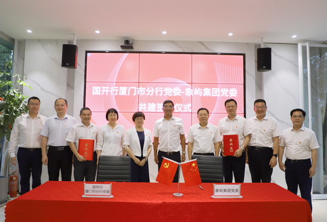 座談會后,雙方黨委舉行《黨組織結對共建協(xié)議》簽約儀式。國開行廈門市分行黨委委員、副行長周樹林與象嶼集團黨委副書記、工會主席邵蕰默代表雙方簽署共建協(xié)議,國開行黨委班子領導曾麗卿、蔡丹華、潘景南,象嶼集團黨委班子領導張水利、陳方、鄧啟東、許振龍,以及雙方職能部門代表等共同見證這一重要時刻。