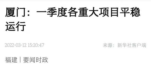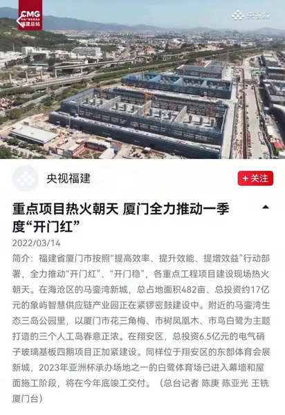 新華社以《廈門:一季度各重大項目平穩(wěn)運行》為題,報道象嶼人今年的“快節(jié)奏”。