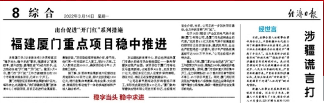 經(jīng)濟(jì)日報、人民網(wǎng)也紛紛關(guān)注報道項目“開門紅”。