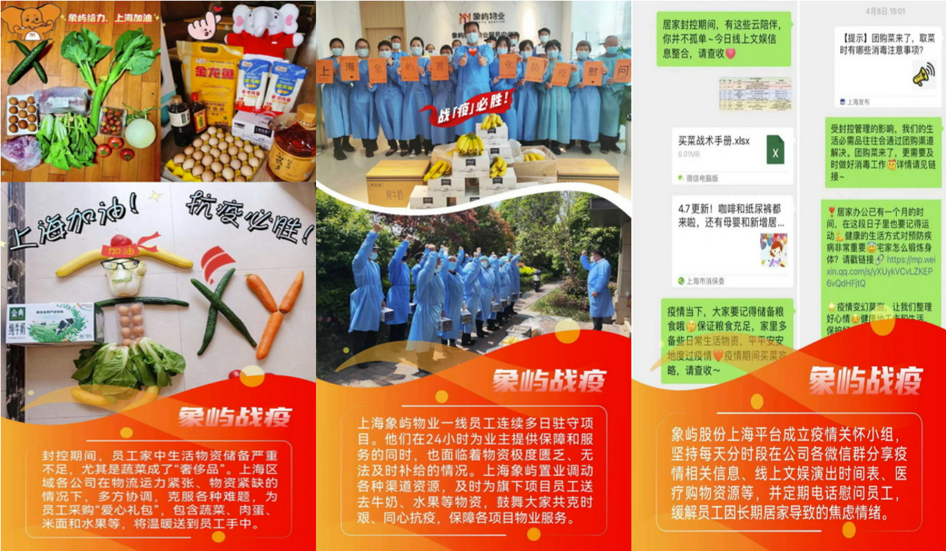 自上海疫情防控攻堅戰(zhàn)打響以來,923位象嶼人堅守崗位,奮戰(zhàn)在此,他們的安危冷暖牽動人心。象嶼集團黨委、集團公司、集團工會特向在滬員工發(fā)去暖心慰問信,并提供24小時不間斷的員工心理關愛熱線,幫助員工疏解情緒壓力。集團黨委、集團工會還相繼出臺多項防疫專項補助政策,并統(tǒng)籌協(xié)調(diào)旗下象嶼股份、象嶼地產(chǎn)、象嶼金象等相關行業(yè)落實在滬員工關愛各項措施,為員工構筑堅實后盾。