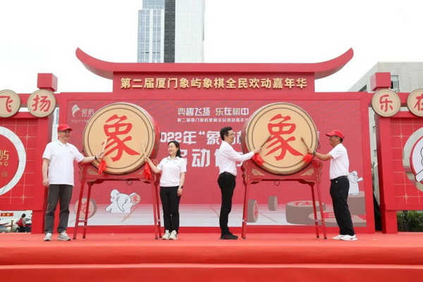 為進(jìn)一步弘揚(yáng)國(guó)粹文化,吸引全民關(guān)注、參與象棋運(yùn)動(dòng),今年5月,象嶼集團(tuán)還將舉辦2022年廈門(mén)市“象嶼杯”象棋團(tuán)體賽,面向全市各區(qū)、機(jī)關(guān)企事業(yè)單位、駐廈部隊(duì)、人民團(tuán)體等,廣泛征集象棋愛(ài)好者參賽,預(yù)計(jì)將有超過(guò)20支隊(duì)伍參與。在嘉年華現(xiàn)場(chǎng),廈門(mén)市總工會(huì)黨組書(shū)記、副主席許毅青,廈門(mén)市體育局黨組成員、副局長(zhǎng)陳嵐,象嶼集團(tuán)黨委書(shū)記、董事長(zhǎng)張水利,象嶼集團(tuán)黨委副書(shū)記、總裁鄧啟東共同登臺(tái)擂響戰(zhàn)鼓,宣布賽事啟動(dòng)。