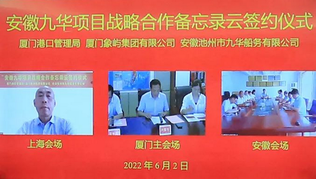 6月2日,象嶼集團(tuán)與廈門港口管理局、安徽池州市九華船務(wù)有限公司“云端”簽署戰(zhàn)略合作備忘錄,三方攜手在船舶建造、運(yùn)輸經(jīng)營、船舶融資、要素聚集等領(lǐng)域深挖合作空間,共同推進(jìn)廈門港口航運(yùn)事業(yè)做大做強(qiáng),助力廈門港口高質(zhì)量發(fā)展。廈門港口管理局黨組書記、局長夏長文,象嶼集團(tuán)黨委書記、董事長張水利,安徽九華船務(wù)董事長王國年等出席簽約儀式。