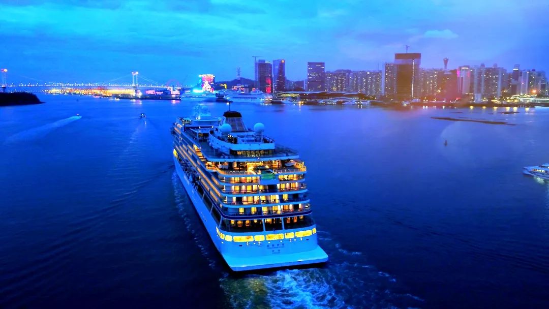 昨日“招商伊敦”號(hào)抵廈時(shí),正值華燈初上。落日余暉給西海灣染上一層金紅色,建筑物全部亮燈,環(huán)顧四周,鼓浪嶼、鷺江兩岸、東渡港、海滄灣、海滄大橋、“海上世界”摩天輪和建筑群……鱗次櫛比、各具風(fēng)貌特色的建筑物一覽無(wú)余,高顏值的生態(tài)花園之城景致盡收眼底。廈門人以“水門”禮儀和熱鬧儀式歡迎久違的游輪游客。廈門港口高質(zhì)量發(fā)展指揮部、廈門港口管理局、廈門市建設(shè)局、廈門市衛(wèi)健委、廈門市口岸辦、廈門海事局、廈門海關(guān)、廈門邊檢、招商蛇口、象嶼集團(tuán)等部門單位亦通力合作,以嚴(yán)格措施打造旅客安全閉環(huán),最大程度確保防疫安全。