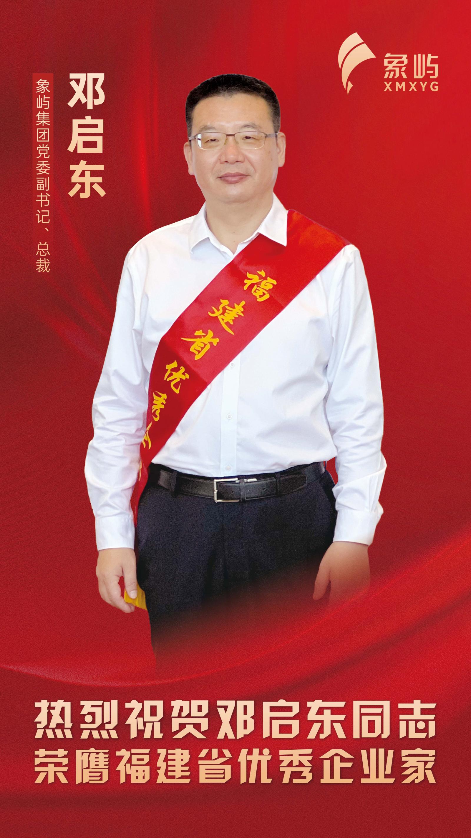 今天上午,第十九屆福建省優(yōu)秀企業(yè)家表彰大會(huì)在福州舉行,象嶼集團(tuán)黨委副書記、總裁鄧啟東榮膺福建省優(yōu)秀企業(yè)家。