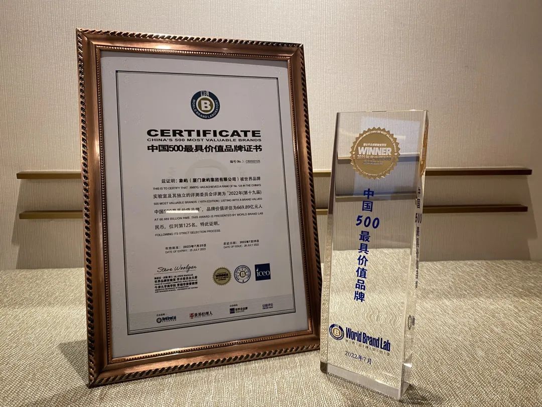7月26日,由世界品牌實(shí)驗(yàn)室主辦的第十九屆“世界品牌大會(huì)”在北京舉行,發(fā)布2022年度《中國(guó)500最具價(jià)值品牌》分析報(bào)告。象嶼以669.89億元的品牌價(jià)值位列榜單第125位,較上一年度前進(jìn)6位。這是象嶼品牌連續(xù)4年蟬聯(lián)榜單,品牌價(jià)值較2019年首年入榜提升246.04億元。